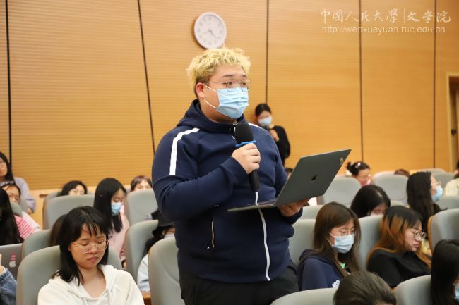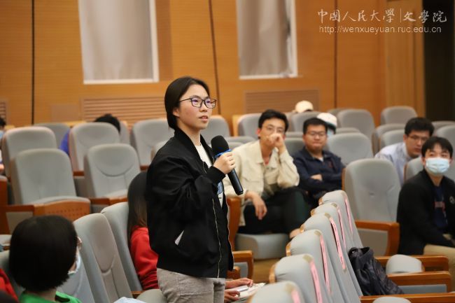 在提问环节,现场同学们十分踊跃。对于“算法开发者是否应该为文本真实性负责”这一问题,黄民烈表示,真实性验证目前是人工智能研究的一个重要课题。对于人类文学创作的经验是否能应用于机器写作,陈奇佳认为人类文学创作与机器创作有着明确的界限,人工智能无法突破。常培杰则认为,人工智能创作与人工写作不存在根本差异,都是基于“计算”的选择行为,都受到语料库与语法规则的限定。