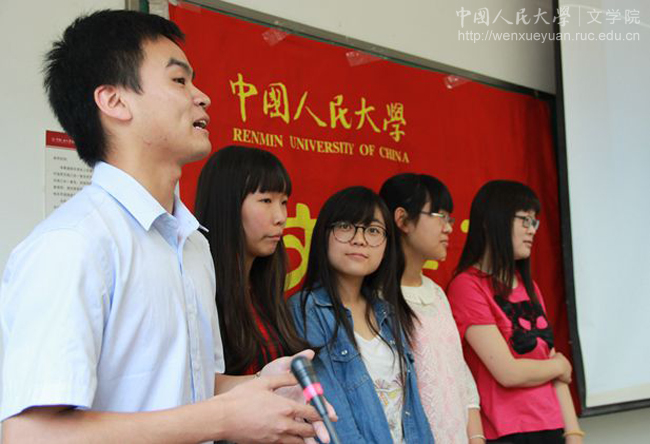 李珊珊同学代表第二组申请者上台,这是一群志同道合的人组成的团体,她们希望能够自导自演一出具有青春特色的话剧,既作为文学节系列活动的一项内容,更作为大家青春的一个重要纪念。拥有排演此次文学节话剧“青鸟”的成功经验的她们自信而热情。
