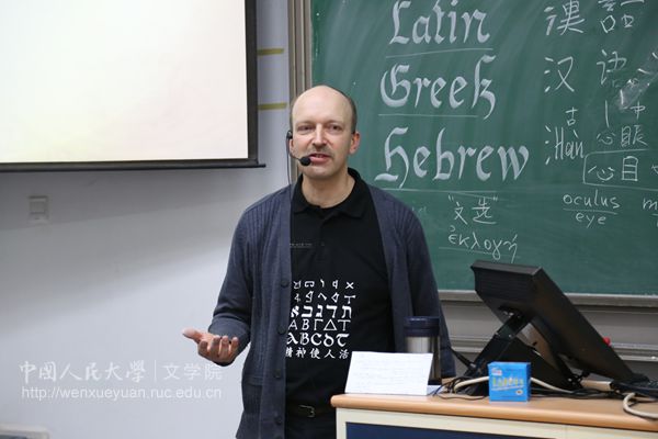 雷立柏教授主要围绕拉丁语、希腊语、希伯来语等西方古典语言的来源及不同语言之间的差异比较,详细讲解了不同语言所隐含的文化意蕴。他认为,研究西方古典语言要学会“饮水思源”,需要对各种语言的起源进行考察和深入研究,以了解每个词语背后所隐含的古代文化信息。他列举了日常生活常见的词语在各种语言中的差异,比较分析了它们之间的渊源与发展脉络,从词源学研究其本义。他结合自身学习西方古典语言的经历,指出学习古典语言唯一的秘诀就是对语言及文献要有浓厚的兴趣,并坚持不断地学习语言。他讲述了自己二十多年前在台北读到《道德经》时的感受,认为那是一个现代西方人与2500年前的古人交谈,是一次跨越东西方文化的非常美妙的交流。