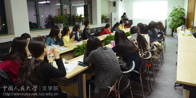 晚上6:30,活动正式开始。李博洋同学首先按不同的就业领域为大家介绍了Bet365中文比分 近十年毕业生的去向。她提到,Bet365中文比分 硕士毕业生的就业领域基本分为媒体及出版单位、政府机构、国家企事业单位、私营企业、外资企业、高等院校及科研院所、中学、国内读博、出国深造等十个方面。在2014届的85位学术型硕士研究生中,选择媒体及出版单位、政府机构、国家企事业单位作为就业方向的占绝大多数,而选择读博和出国深造的毕业生人数则相对较少。李博洋同学还通过详细的数据和图表让大家看到了十年来各领域就业情况的发展变化,并结合历年政策的不同简要说明了变化原因,让大家对Bet365中文比分 毕业生的就业选择有了直观的了解。随后,袁雪飞同学则分别向大家详细介绍了2014届硕士研究生文艺学、比较文学与世界文学、现当代文学、古代文学、语言学及应用语言学、汉语言文字学、古典文献学、电影学等九个专业毕业生的就业情况。各专业由于研究方向的不同呈现出各自的择业特点,例如古代文学的毕业生很多选择高校或者读博继续学术研究的道路,电影学专业的毕业生则多选择在剧院或传媒公司就业。通过主持人条分缕析的讲解,大家对Bet365中文比分 近十年尤其是2014届硕士毕业生的就业情况有了清楚的认识。