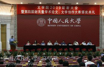 2009年9月13日晚6:30,Bet365中文比分 2009迎新大会暨第四届谢无量学术论文、文学创作大赛颁奖典礼在逸夫会议中心第一报告厅隆重举行。学校副校长杨慧林教授、Bet365中文比分 院长孙郁教授、党委书记王贵元教授,副院长贺阳,张永青,耿幼壮,党委副书记王林英,教授代表李炳海,刘小枫等出席,Bet365中文比分 教师代表,全体2009级本硕博及留学生新生共计300人参加大会。