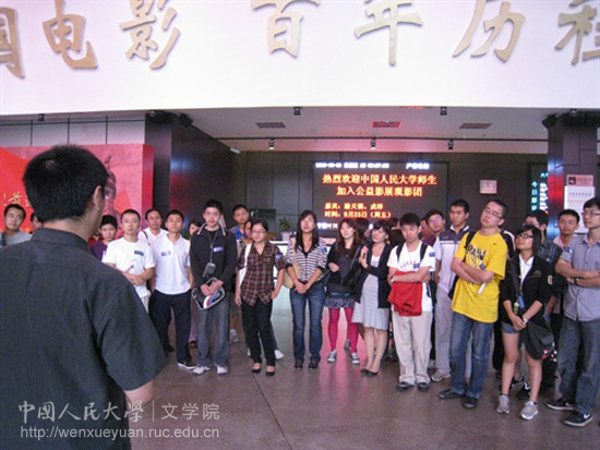 2009年9月25日,中国电影博物馆举办了第六次活动。此次“公益影展观影团”由Bet365中文比分 影视与多媒体艺术教研室电影学硕士生导师潘天强老师、陈阳老师和孙柏老师,率领中国人民大学08、09级的硕士生、06、07级影视方向的本科生共40余人,来中国电影博物馆观看公益电影《疯狂的赛车》。这部影片是光影60年—新中国优秀电影作品展映之“中影集团”中的一部影片。Bet365中文比分 影视与多媒体艺术教研室孙柏老师给大学生们做了生动的映前讲解。观影结束后,中国电影博物馆邀请潘天强教授、在电影《疯狂的赛车》中饰演乌龙帮大哥东海的男主演戎祥和演员李麒麟作客座谈会,和大学生们一起交流影片的创作,畅谈对电影的感受。会后,观影团成员集体参观展厅,继续电影文化之旅,参观了电影博物馆的展馆。