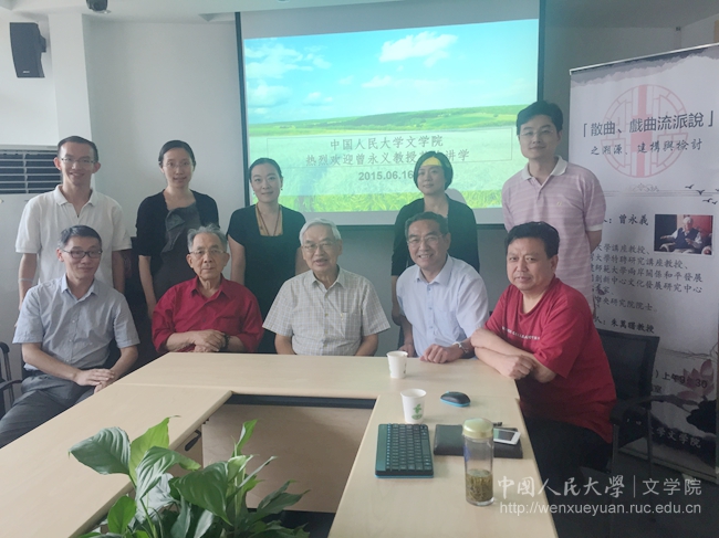 曾永义教授原任台湾大学教授,现为台湾大学特聘研究教授、世新大学讲座教授,台湾中央研究院院士,不仅出版了《明代杂剧研究》、《论说戏曲》等多部学术著作,还创作了《李香君》等多部舞台剧。讲座中他旁征博引,古典诗词、音律的资料信手拈来,所体现出来深厚的学术功底和精辟的见解让在场的师生深为叹服。