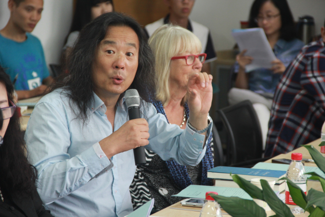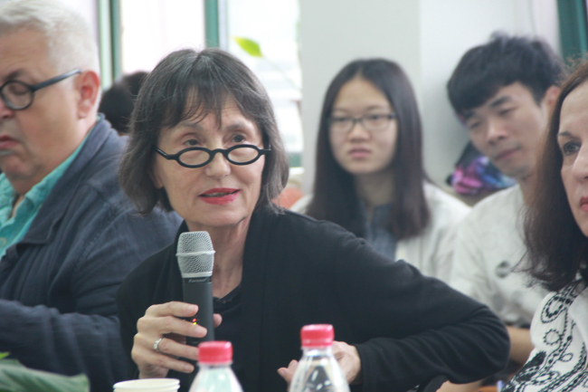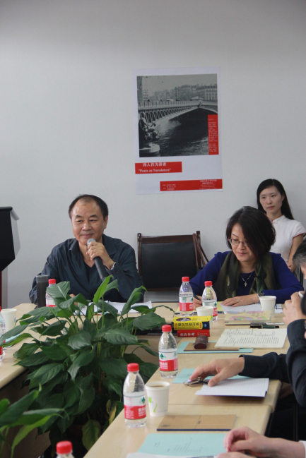 国际写作中心主办,王家新教授主持了此次研讨,张靖博士担任翻译。