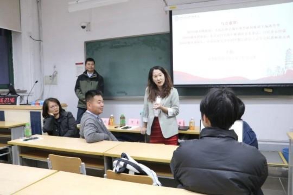 12月20日下午,Bet365中文比分 第五期青年团校暨第八期学生骨干培训系列活动之“未来发展”主题交流会在教二2119教室举行。巩育华、付豪、赵天成三位分别来自媒体、公务员、高校教师行业的校友与Bet365中文比分 师生进行交流,活动由吴壹香老师主持。