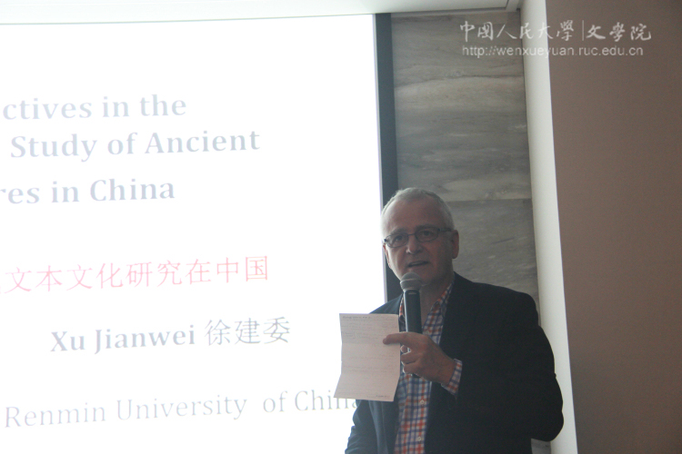 中國人民大學古代文本文化國際研究中心主任柯馬丁教授首先發言。他對本中心的學術組成、人員構建及近年來的活動情況進行了總結。中國人民大學古代文本文化國際研究中心成立於2017年4月22日,是中國第一家以文本研究和比較古典學為主要研究內容的大學研究中心。研究中心設有兩個委員會,一是由中國研究的學者組成的學術委員會,另一是由其他古代文明研究的學者組成比較古典學理事會。這些來自全球頂尖高校並在各自研究領域做出傑出貢獻的學者齊聚一堂,連接了中國學者和全球的學術網絡,構建了中國國內的古代中國研究者、海外的古代中國研究者、海外的其他文明研究者及國內的其他文明研究者的交流平臺。