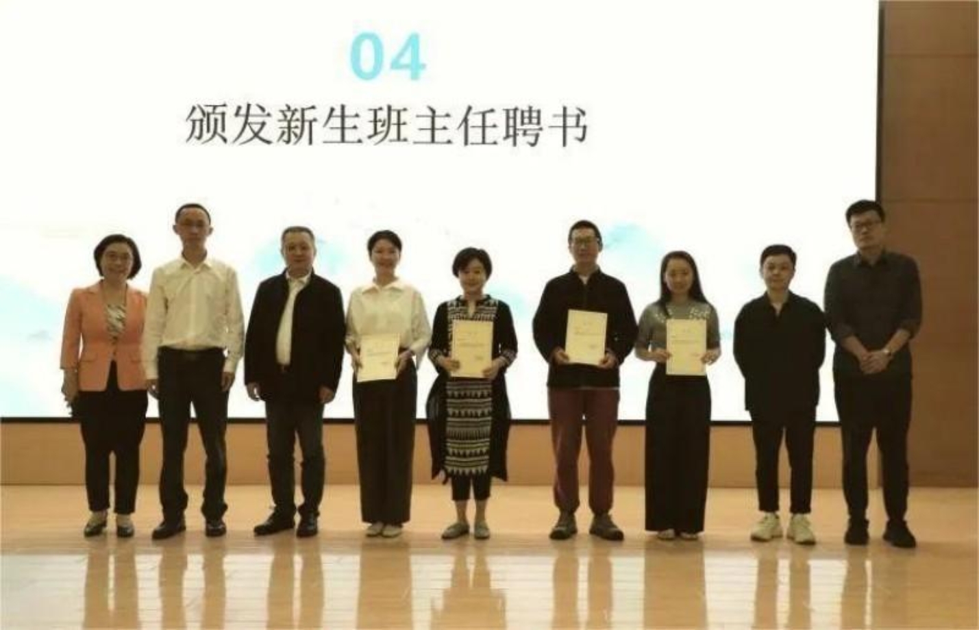 大会还举行了新生班主任聘书颁发仪式。陈剑澜等为新生班主任代表颁发聘书。