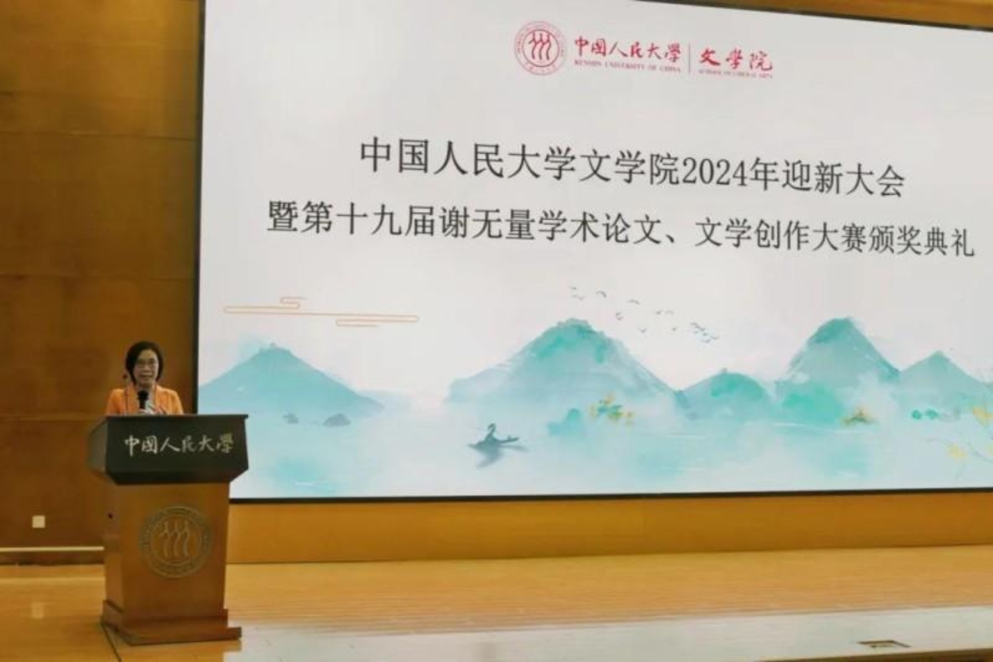学生代表依次上台发言。在校生代表2022级硕士张若琳分享了在人大读书七年的收获与美好回忆,并给予同学们三点建议。首先,珍惜与信任老师和课堂,适应不同风格与特点的教学方式;其次,珍惜学校和Bet365中文比分 为我们提供的资源与机会,将学业成果播撒在祖国大地上;最后,珍惜自己的身体与精神,为今后的学业和生活提供保障。2024级硕士新生代表管若彤回顾了大学四年的感动与对未来大学生活的期待。希望同学们都能够拥有足够的书卷气,充足的底气与青年的锐气,找到持之以恒的奋斗目标,借助文学的力量驶向更广阔的远方。2024级博士新生代表王修豪分享了自己走上文学道路的独特故事。从理科跨越到文学,从业余爱好跨越到专业学术。他用勇气与真心打破孤独的恐惧,引领人生的新体验。2023级本科新生代表李雨田分享了在人大探索各领域学科知识,全方面成长的感受,希望未来的学习能够在功利导向中寻找热爱,在文学典籍中找到属于自己的世界。