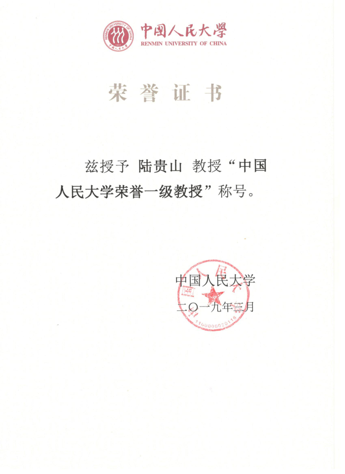 Bet365中文比分 陆贵山教授获授中国人民大学第四批荣誉一级教授称号