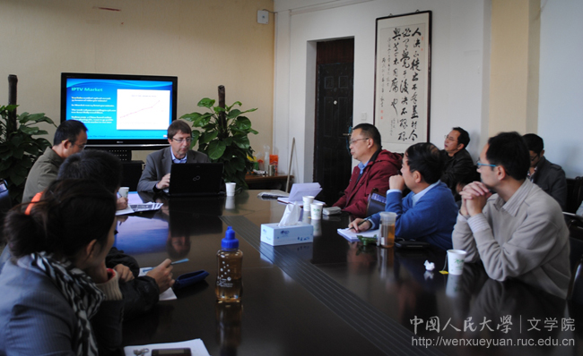 在讲座中,马蒂亚斯先生结合德国网络电视发展,谈到了IPTV(即交互式网络电视)的发展现状和潜力,进而指出新的媒介平台将为影视业提供更多的机会,如在线电影数据库的建立将会使数字影院形成新的营业模式、改变观众的观影习惯、为创作者拓展创作空间等。马蒂亚斯先生还谈到交互式视频的发展将有助于推进大型交互网络的建立,产生更真切的交流体验,例如可以通过视频组建在线社区,在网上购物时通过视频与店主即时沟通等。
