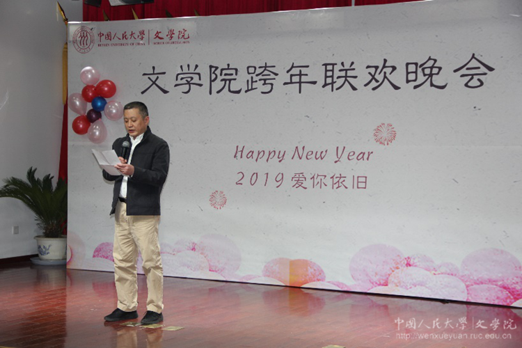 对过去一年来辛勤付出的各位老师表示感谢,并祝福同学们在新的一年,能追随梦想,继续前进。同时,他希望,伟大的时代里,每一个文院人都能把握住文学那份使人安静的力量,肩载起时代的责任与担当。
