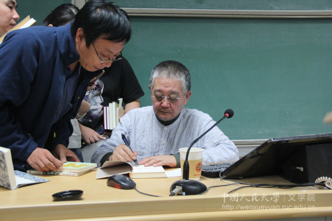 讲座结束后,阿城先生与在场的观众进行了互动。在被问及“文学究竟应该承担什么”时,他说,文学帮助我们改变我们的状态,并引用《尚书》成句:“诗言志,歌咏言。”文学作品能改变人的当前状态,而“流行歌曲只安慰原来的状态”。