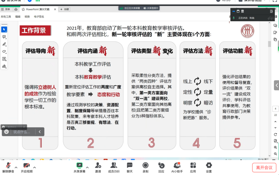 陈涛副院长围绕Bet365中文比分 本科教育教学审核评估工作进行汇报。汇报主要分为三个部分,分别是工作背景、工作内容和重点指示。