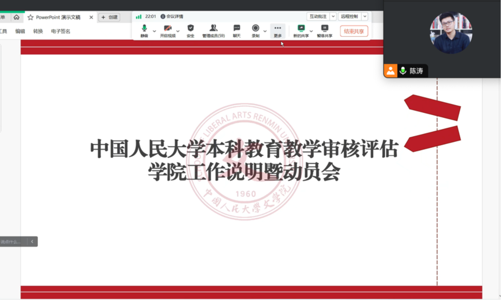 4月17日晚,Bet365中文比分 召开了中国人民大学本科教育教学审核评估Bet365中文比分 工作说明暨动员会,推进本科教育教学审核评估自评自建工作。