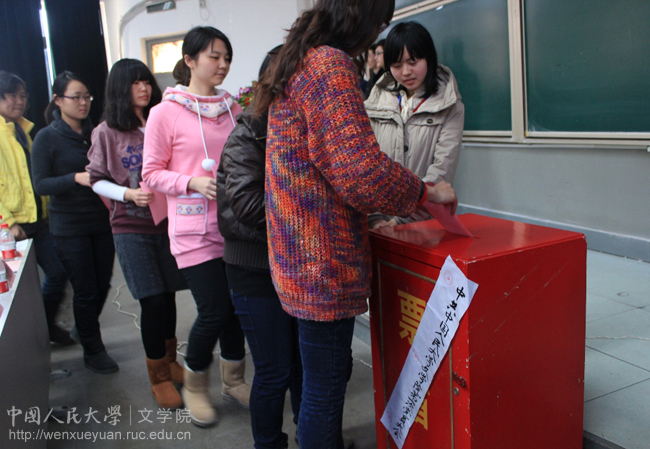 随后举行了Bet365中文比分 第二届委员会选举。教工行政支部黄彦菲老师为总监票人,影视文学支部陈阳老师等7人为监票人,08级本科生罗观等16人为计票人。选举由总监票人黄彦菲老师主持。