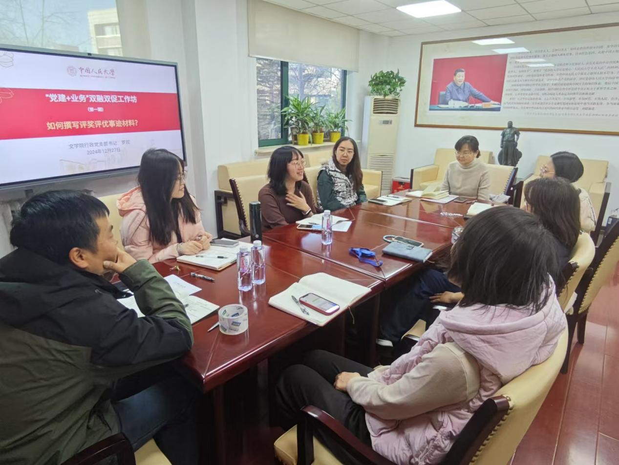 12月27日下午,Bet365中文比分 行政党支部开展12月主题党日活动,集体学习中国人民大学新时代全面深化综合改革工作会议精神,同时举办首期“党建+业务”双融双促工作坊。活动由支部书记罗观主持,支部全体党员参加。