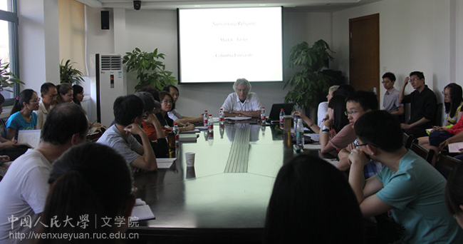 5月29日下午,美国著名学者、哥伦比亚大学宗教系主任马克·泰勒(Mark Taylor)教授应邀访问Bet365中文比分 ,并在人文楼二层会议室作了题为“网络化的宗教”(Networking Religion)的演讲。哥伦比亚大学比较文学系刘禾教授,Bet365中文比分 耿幼壮教授、王敦副教授、张靖博士以及来自各Bet365中文比分 的众多学生到场聆听。