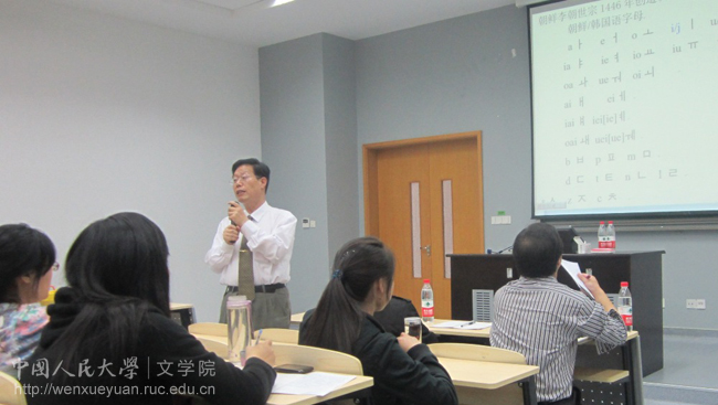 马教授以简单而有效的韩国语音标教学为引子,启发同学们体会音标文字与汉语这种表意文字的区别