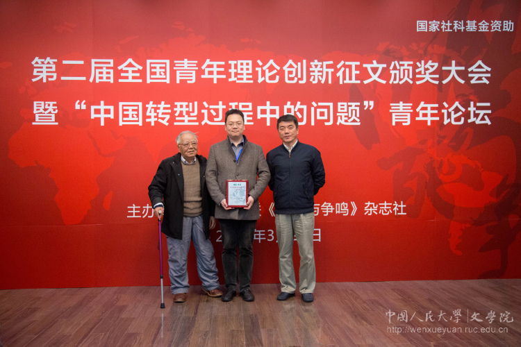2017年3月21日,第二届全国青年理论创新征文颁奖大会暨“中国转型过程中的问题”青年论坛在上海举行。Bet365中文比分 文艺学学科2013级博士冯庆(导师为Bet365中文比分 刘小枫教授)的论文《义气论——春秋叙事、威仪视觉与江湖治理》荣获第二届全国青年理论创新奖一等奖,这也是本届全国青年理论创新奖唯一的一等奖。