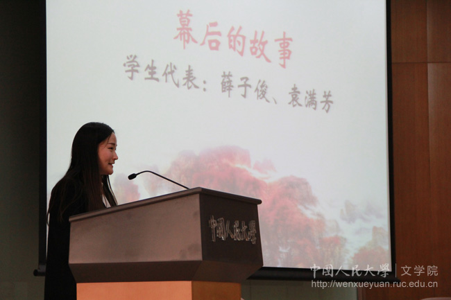学生代表薛子俊和袁满芳讲述了文学节幕后故事,表现对文学节以及文学的热情。
