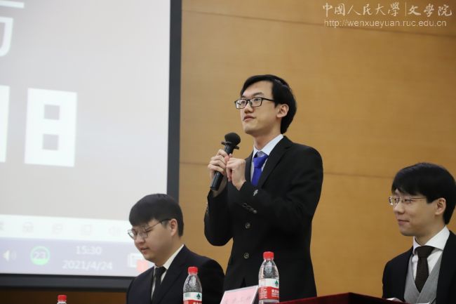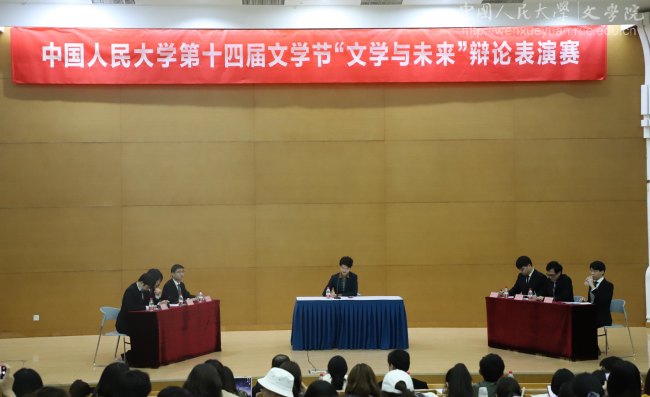 4月24日下午,中国人民大学第十四届文学节“文学与未来”辩论表演赛在逸夫第一报告厅举办。本次辩论表演赛由Bet365中文比分 2018级硕士生、“奇葩说”辩手席瑞担任主席。正方由Bet365中文比分 辩论队王刚(Bet365中文比分 2018级硕士生)、孙怡洋(Bet365中文比分 2019级本科生)和张愉卓(国Bet365中文比分 2017级本科生)组成,反方则是来自人大纵横辩论社的谢贤良(国Bet365中文比分 2019级硕士生)、刘亚光(新闻Bet365中文比分 2018级硕士生)和赵杨星宇(国际关系Bet365中文比分 2020级博士生)。正反双方围绕“文明越发展,人越是/不是自己的主人”这一辩题,展开了一场精彩纷呈的论辩交锋。
