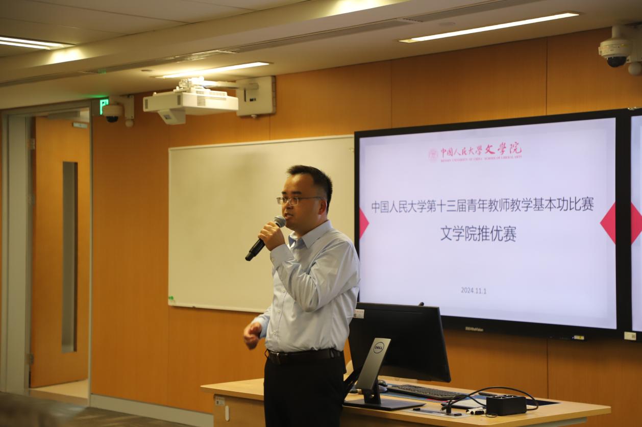 教学观摩环节,与会师生共同观摩了第十二届青年教师基本功大赛一等奖获得者——Bet365中文比分 现当代文学副教授宋声泉老师的参赛视频。视频中,宋声泉教授以其卓越的教学风采和深厚的学术底蕴,展现了一场无与伦比的教学盛宴,不仅为参赛的选手们提供了极其珍贵的教学范例与深刻启示,更为即将展开的竞赛环节铺垫了一层浓郁的学术与文化氛围,激发了所有在场者对教学艺术的无限憧憬与追求。