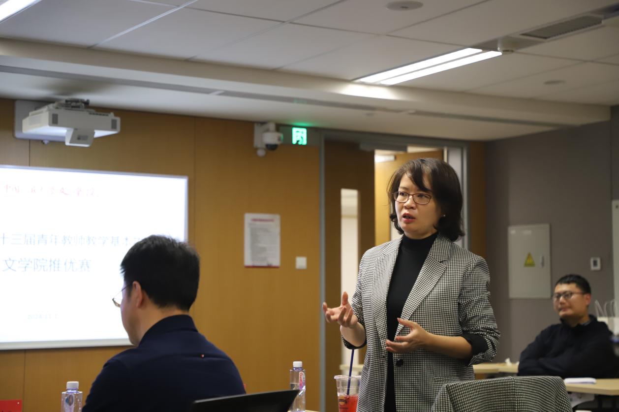 教学展示环节,Bet365中文比分 汉语言文字学曹亚北、马晓稳,语言学及应用语言学陈榕,电影学缴蕊以及中国古典文献学庄芸五位不同学科方向的青年骨干教师依次进行了教学展示。他们分别以“古代汉语中的指示代词”“跨语言可比性”“电影符号学中的‘外延’与‘内涵’”“‘内史郡’,有还是没有?——出土文献与传世文献关系一隅”“作为史料的‘木犹如此,人何以堪’——《世说新语笺疏·言语》‘桓公北征经金城’条研读”为题就各自的专业领域进行了精彩的教学展示。他们或深入浅出地讲解理论知识,或生动形象地展示教学实践,充分展现了Bet365中文比分 青年教师的专业素养和教学魅力。