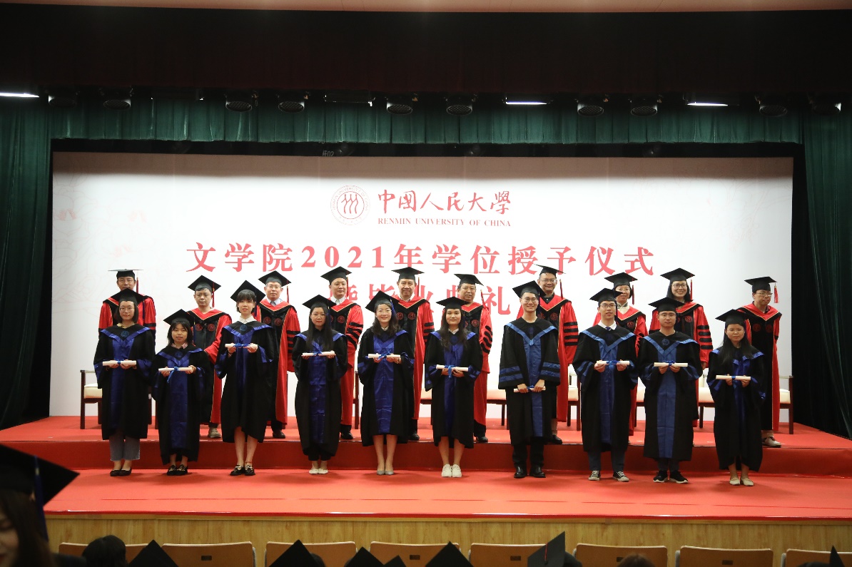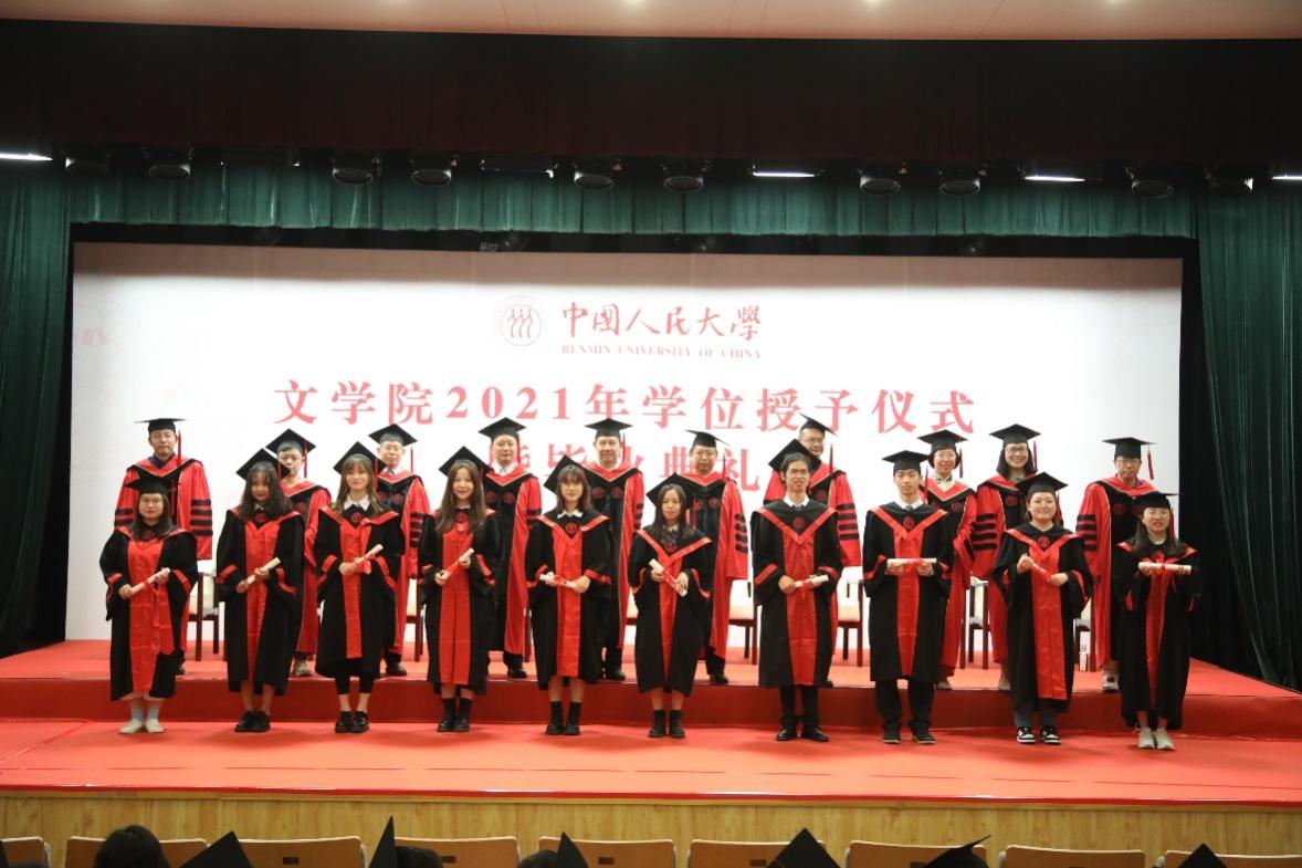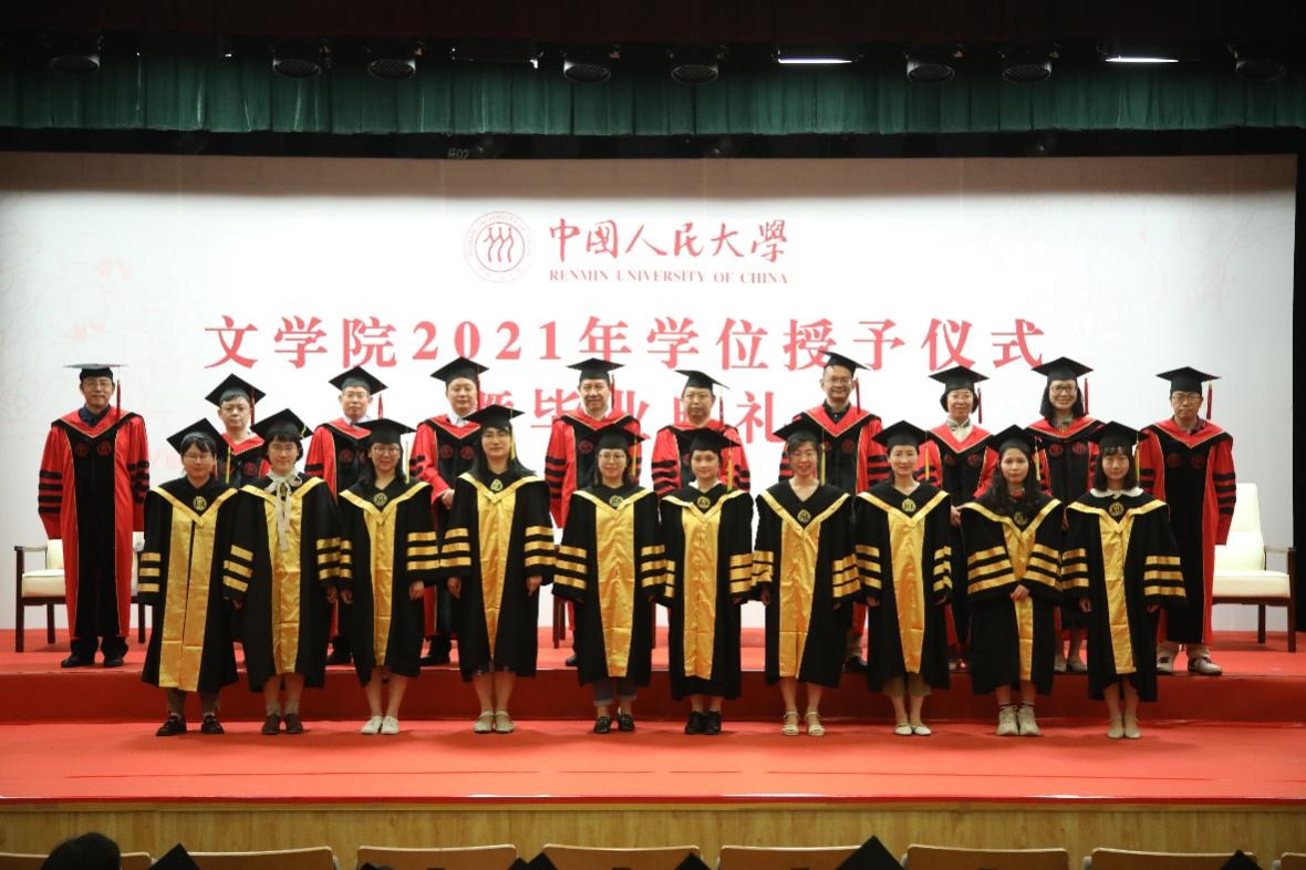 在学位授予仪式中,副院长陈奇佳教授宣读《关于授予学士学位的决定》,副院长杨庆祥教授宣读《关于授予硕士学位的决定》。院学术委员会委员代表及教师代表陈剑澜、杨慧林、徐正英、张永青、陈奇佳、杨庆祥、陈阳、梁坤、王燕、宋文辉等共同为Bet365中文比分 2021年83位学士学位获得者、134位硕士学位获得者授予学位、拨穗正冠,并与博士毕业生合影留念。