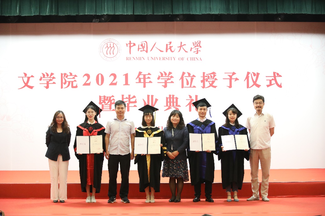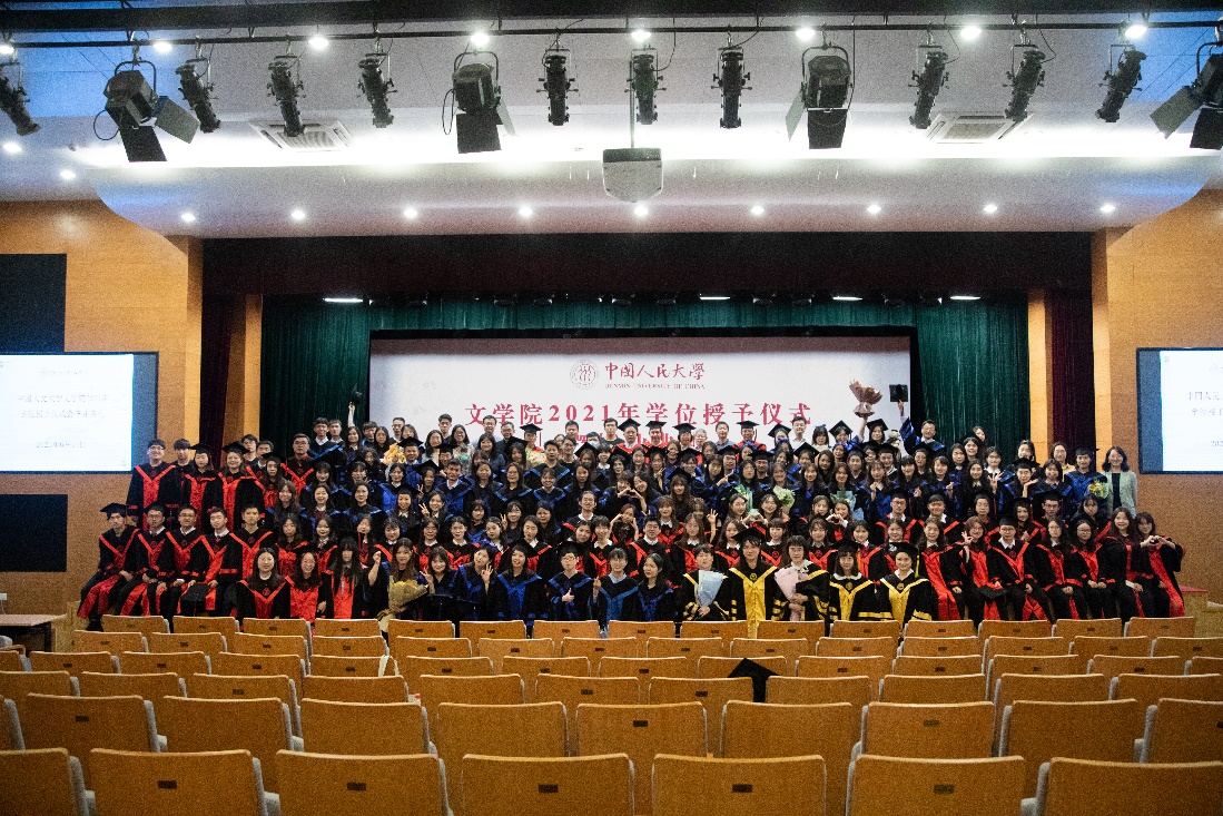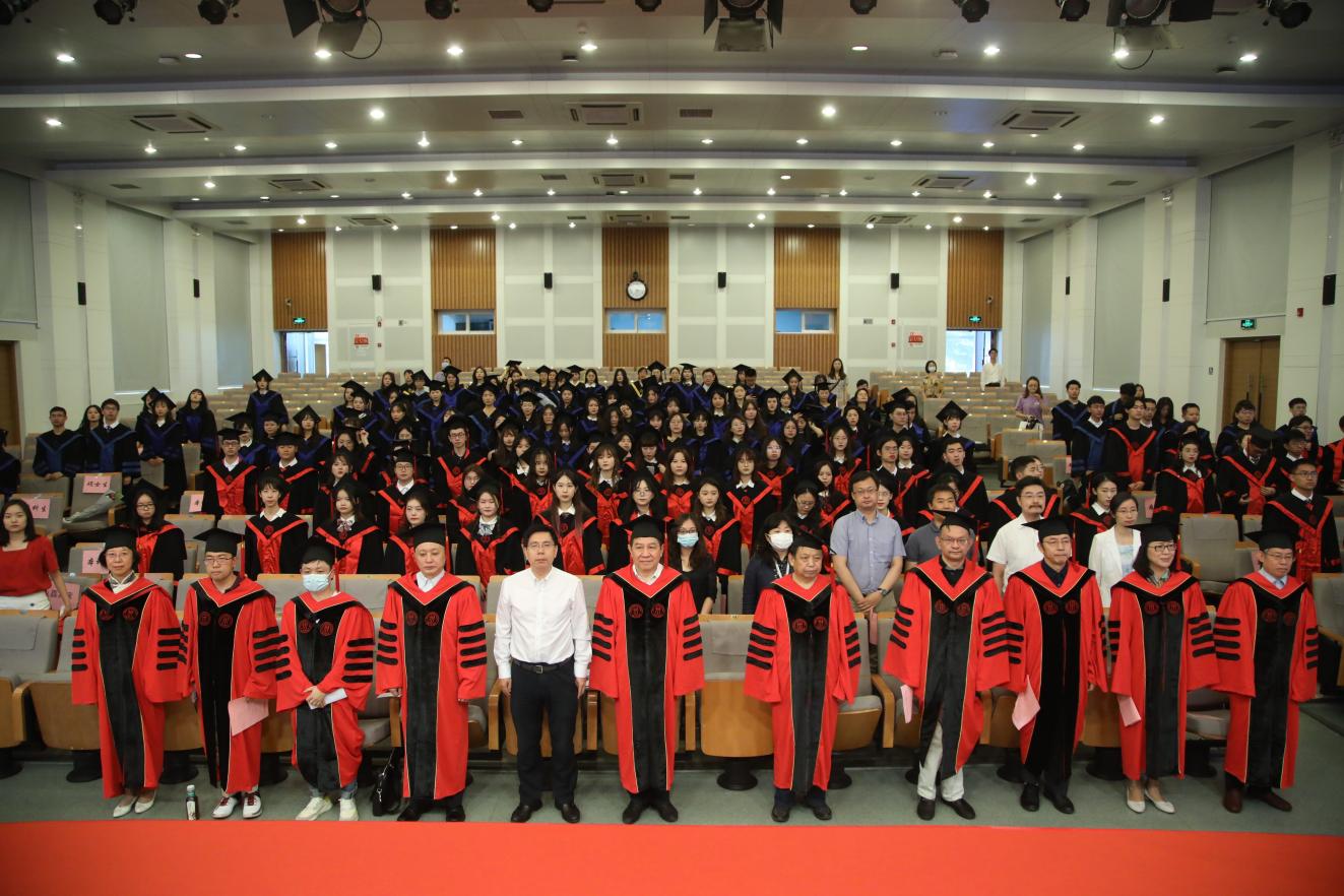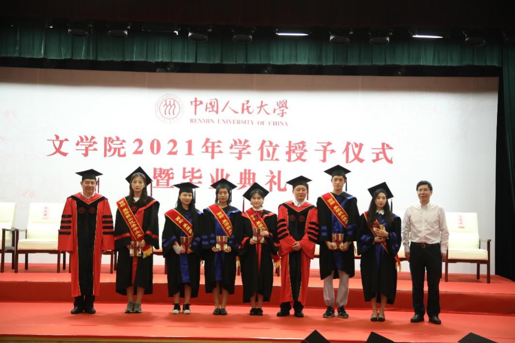 在学位授予仪式中,副院长陈奇佳教授宣读《关于授予学士学位的决定》,副院长杨庆祥教授宣读《关于授予硕士学位的决定》。院学术委员会委员代表及教师代表陈剑澜、杨慧林、徐正英、张永青、陈奇佳、杨庆祥、陈阳、梁坤、王燕、宋文辉等共同为Bet365中文比分 2021年83位学士学位获得者、134位硕士学位获得者授予学位、拨穗正冠,并与博士毕业生合影留念。