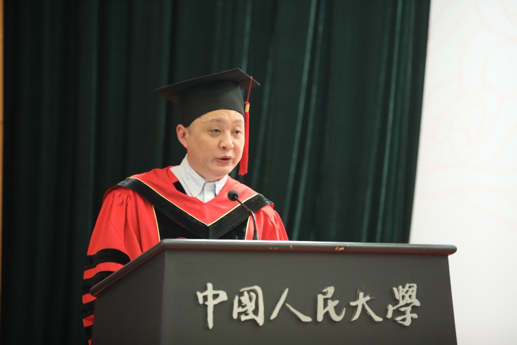 校党委副书记郑水泉教授代表学校向今年毕业的同学们表示热烈的祝贺和诚挚的祝福,并宣读Bet365中文比分 2021届优秀毕业生名单、《关于表彰Bet365中文比分 庆祝建党百年优秀学生共产党员(毕业生班级)的决定》。郑水泉希望受到表彰奖励的同学们珍惜荣誉再接再厉,不忘始终奋斗在时代前列的责任担当,不忘艰苦奋斗、实事求是的优秀品格,充分发挥优秀学子的榜样作用,用实际行动践行人大学子“国民表率、社会栋梁”的情怀担当。