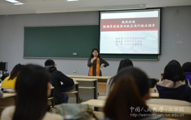 3月18日,Bet365中文比分 党委副书记胡玲莉、团委书记黄彦菲、党务秘书邢华到苏州校区,为汉语国际教育专业同学做就业指导专场讲座。苏州校区研究生部主任张伟、汉语国际教育专业2015级班主任李丽琴、曹睿昕及汉语国际教育专业全体同学参加了讲座。讲座由Bet365中文比分 副教授张璐主持。