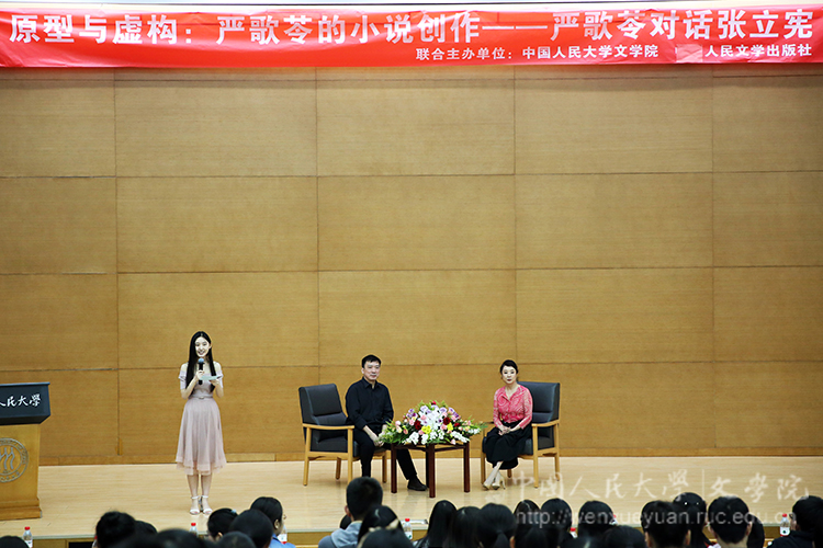 2018年4月15日下午3点,Bet365中文比分 第十二届文学节系列讲座之“原型与虚构:严歌苓的小说创作”对谈活动在逸夫第一报告厅顺利举办。人民文学出版社携手Bet365中文比分 ,邀请著名作家严歌苓,《读库》主编、人大校友张立宪先生一同走进校园,就严歌苓小说创作中的“原型与虚构”问题展开对话。