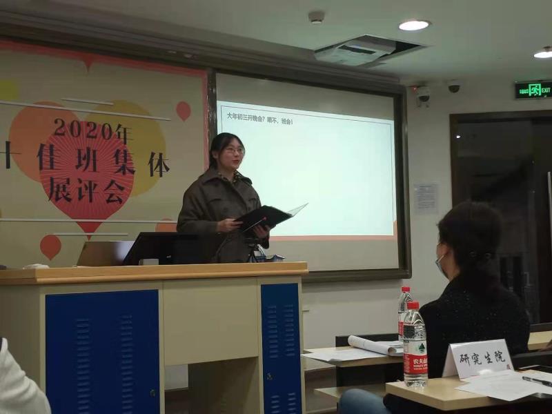 2019级硕士二班最终脱颖而出,排名全场第五,斩获了十佳班集体荣誉称号。他们注重思想引领、学习风气、文化氛围、实践能力、奉献情怀等多方面的建设,“我和我的祖国”、“做怎样的一代人”等主题班会成为了他们的“品牌节目”,“B站《后浪》宣传片及其舆论风波”等线上讨论会更彰显了文院学子的风发意气。