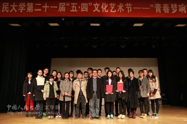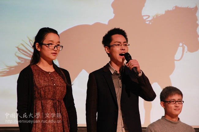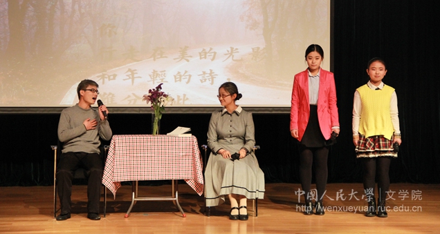 演出结束后,由中央人民广播电台主任方明老师代表现场评委对本场比赛进行点评。方明老师高度赞扬了同学们的朗诵,并从以往的经历出发,称赞本次人大朗诵艺术节的举办是相当成功的,鼓励大家继续努力。接着,方明老师回忆起自己的朗诵经历,并即兴朗诵了一首关于“爱”的作品,赢得了在座观众热烈的掌声。至此,本次“五·四”文化艺术节诗歌朗诵比赛圆满落幕。
