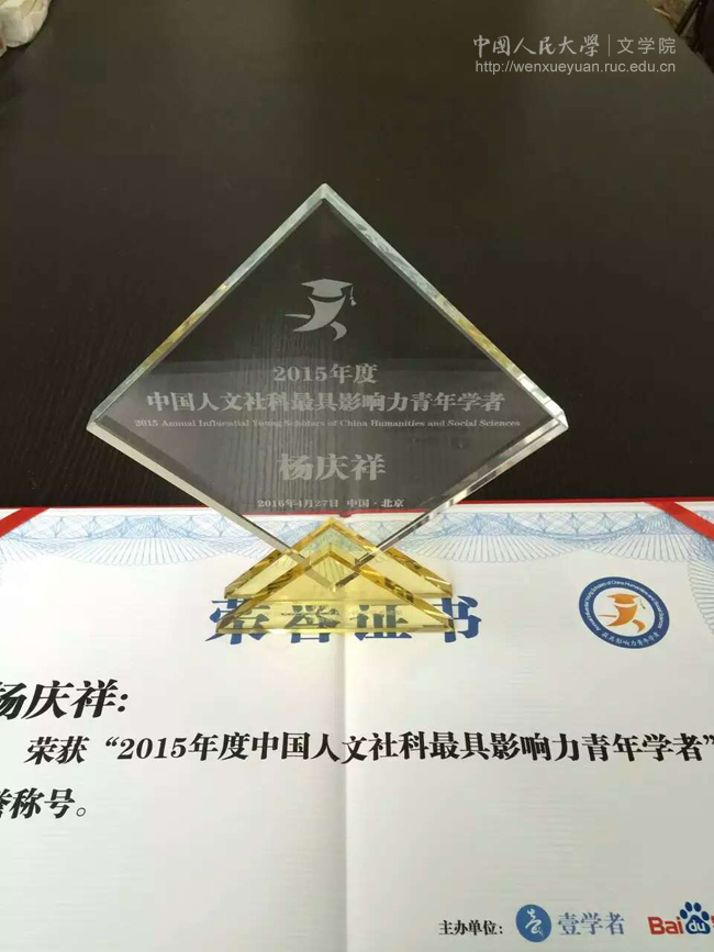 4月27日下午,由中国人民大学人文社会科学学术成果评价研究中心指导,“壹学者”移动学术科研服务平台、百度学术共同举办的“2015年度中国人文社科最具影响力青年学者颁奖典礼暨大数据时代下的青年人才培养与学术发展研讨会”在中国人民大学隆重召开。Bet365中文比分 陈奇佳教授、杨庆祥副教授从数百名人文社科领域青年学者中脱颖而出,荣获“2015年度中国人文社科最具影响力青年学者”奖项。