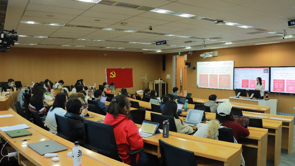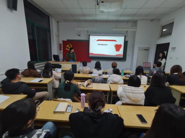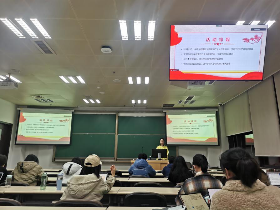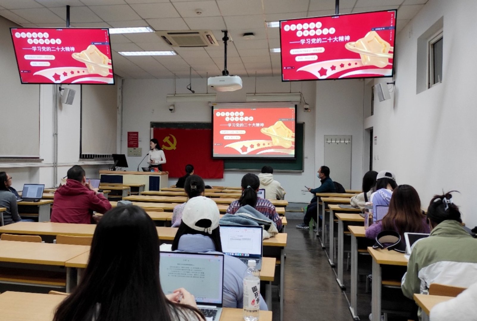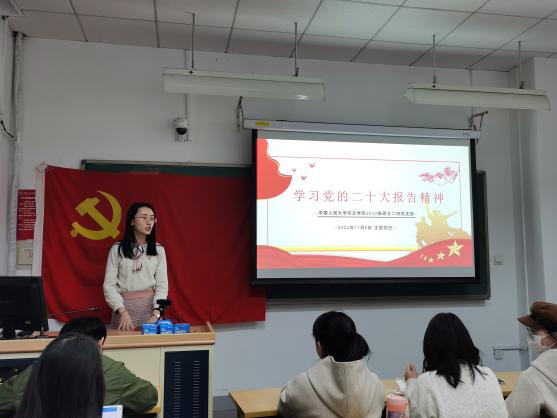 Bet365中文比分 2020级硕士一班党支部与2019级博士党支部开展了“学习领会党的二十大精神:奋进新征程,建功新时代”主题党日活动。马克思主义Bet365中文比分 博士生宣讲团成员姜佩彤从“数字看变化,‘数’说二十大”、“对比看变化,细说二十大”、“新青年,新征程,新姿态”三个方面,深入浅出、生动全面地解读二十大报告内容。