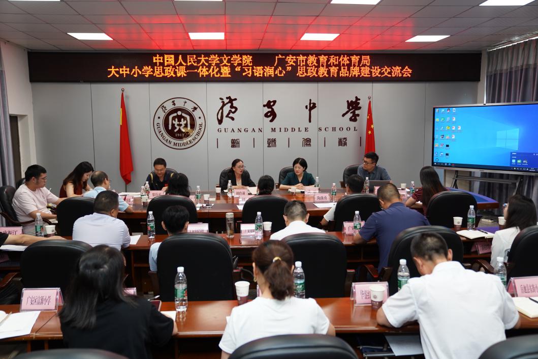 支教团助力广安思政教育品牌建设,与广安市委宣传部、广安市教育体育局、“习语润心”思政品牌建设部分试点学校负责人共同召开思政品牌建设交流会,研讨大中小学思政教育一体化建设举措,深入推进习近平新时代中国特色社会主义思想进教材、进课堂、进头脑,探索校地合作新模式,为争做新时代小平家乡“种树人”贡献高校智库力量。