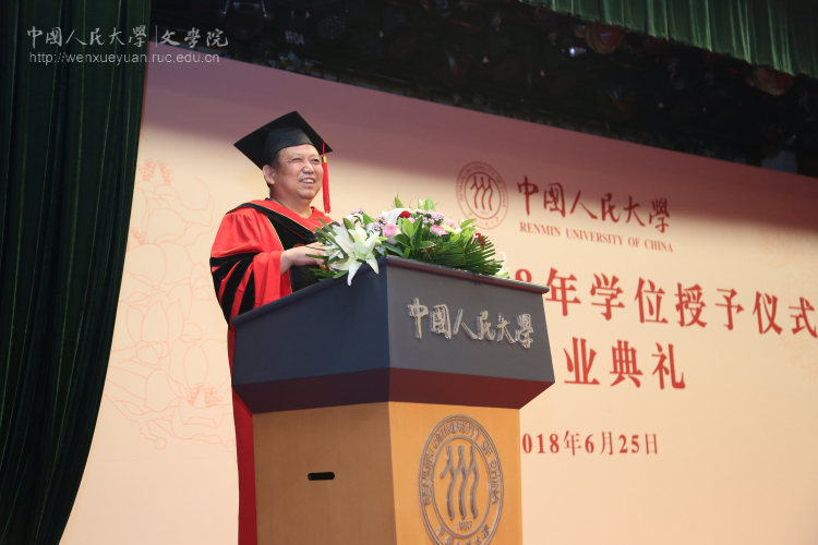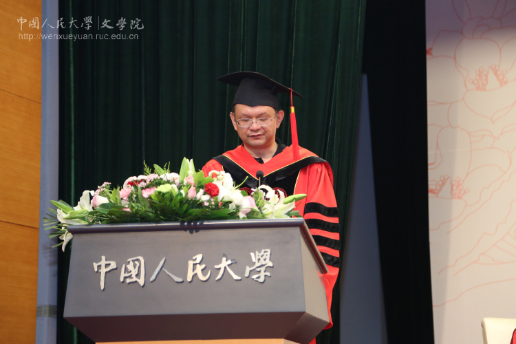 仪式进行第十项,Bet365中文比分 院长孙郁教授致辞。他告诉毕业生们,禁不住质疑的学问是脆弱的,只有不断反诘和追问,方能丰富自己,同时要珍视老师们对于独立思考与精神突围的提示。接着,他表示,文凭不等于学问,在谙熟书本知识的同时,也要认真研读人间这部大书,在开阔的视域里,做一个有趣味的人;也要永远保持着对世界的好奇心和猜想,在辨析中坚守自我的同时关心“他人的自己”。最后,他希望同学们能在坚守中将梦变为现实,并祝福“世界会因你们而改变”。