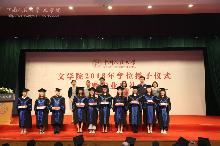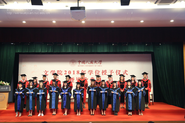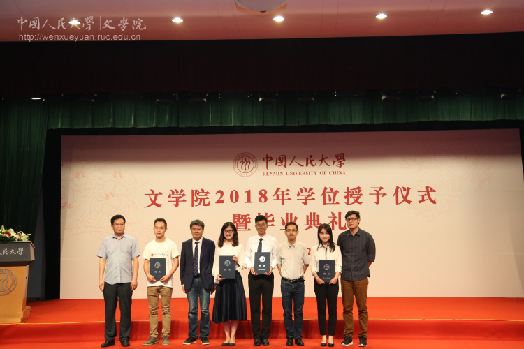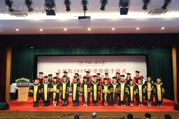 随后,Bet365中文比分 2018年学位授予仪式正式开始。校学术委员会委员、院长孙郁教授,院学术委员会委员徐正英教授、杨联芬教授、陈前瑞教授、陈奇佳教授,已逾三十年教龄的教师代表李今教授、王家新教授、梁坤教授、骆峰副教授,副院长徐建委副教授、副院长徐楠副教授,共同为Bet365中文比分 2018年学士学位、硕士学位获得者授予学位,并与博士毕业生合影留念。
