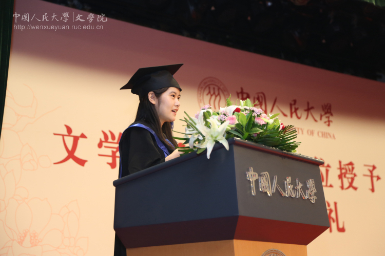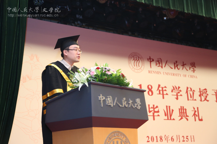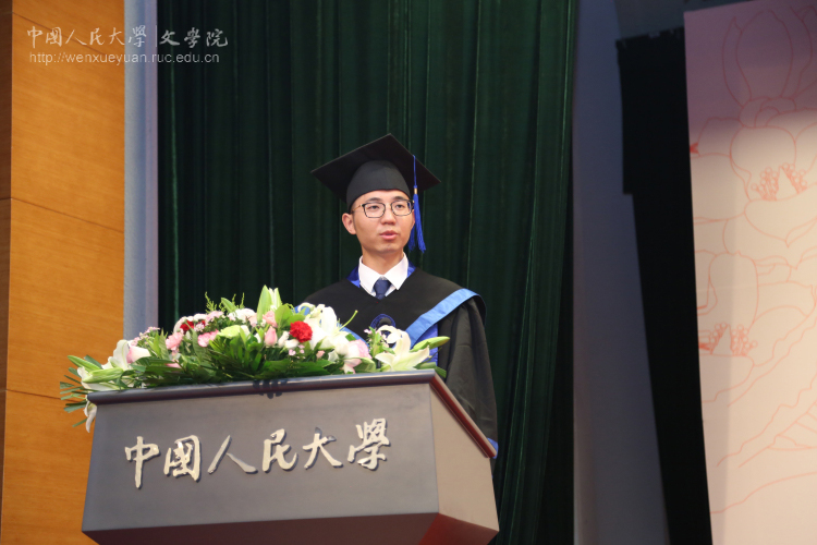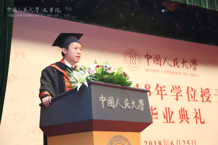 接着,Bet365中文比分 2018届本科生杨春萌、留学生刘政、学术型硕士王妍思、专业型硕士王永程和博士生雷欣翰相继作为毕业生代表发言。他们先后表达了对学校、Bet365中文比分 的眷恋之情,对导师、同窗和挚友的感激之情,并表示,不论未来如何选择,将始终带着文院在自己生命中所留下的永恒烙印砥砺前行。