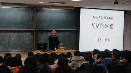 院长孙郁教授为大家带来的讲座“胡适的困境”在公共教学楼1205举行。本次讲座为菊生大讲堂第四期。菊生大讲堂系列讲座是由商务印书馆、北京大学团委和中国人民大学合办的系列讲座。