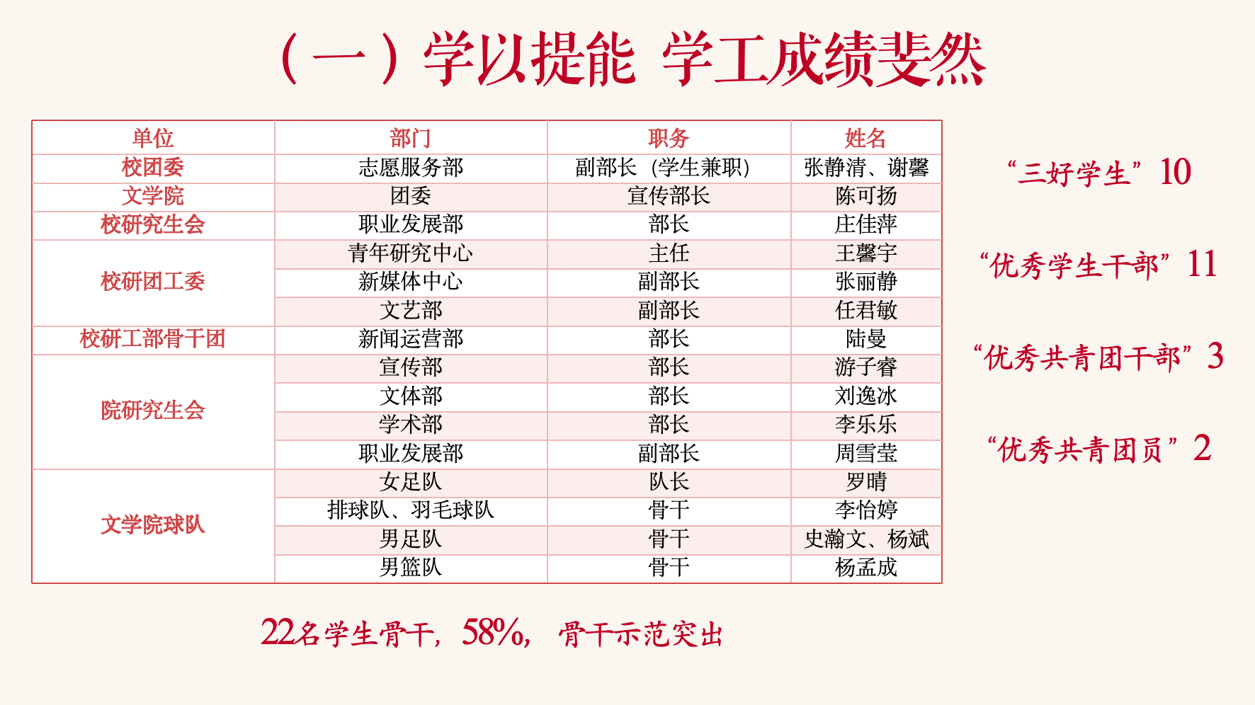 (一)学以提能,学工成绩斐然
